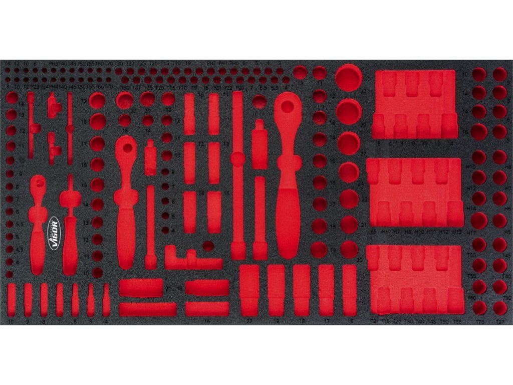 Prázdná pěnová vložka pro gola sadu a nástrčné klíče.