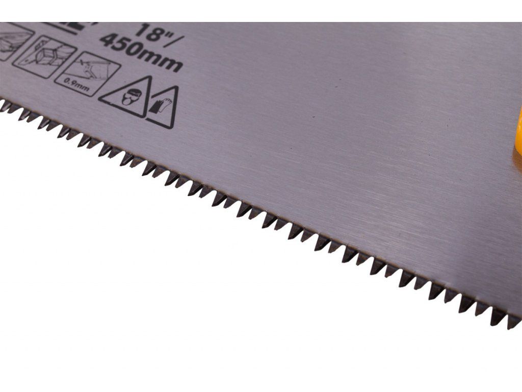Délka 550 mm, pilový plátek 450 mm, TPI7, tvrzená kalená ocel, ergonomická rukojeť, hmotnost 233 g.