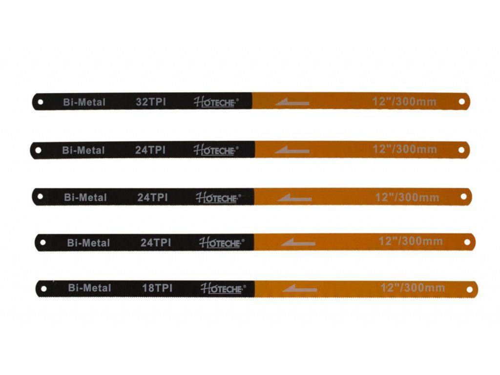 Sada 5 ks pilových plátku na kov o délce 300mm. 1x 18 TPI, 3x 24 TPI, 1x 32 TPI.