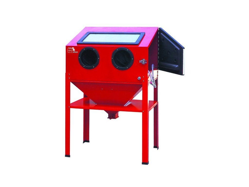 Ocelový pískovací box s vnitřním objemem 220 l pro pískování a renovaci menších až středně velkých předmětů.
