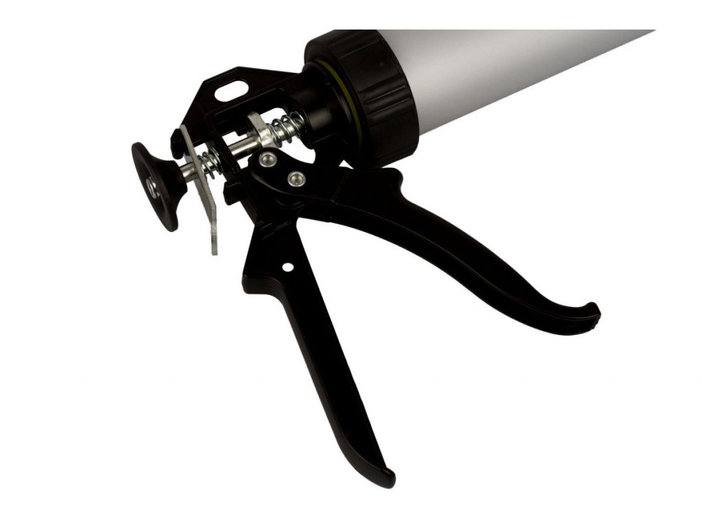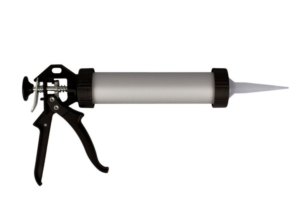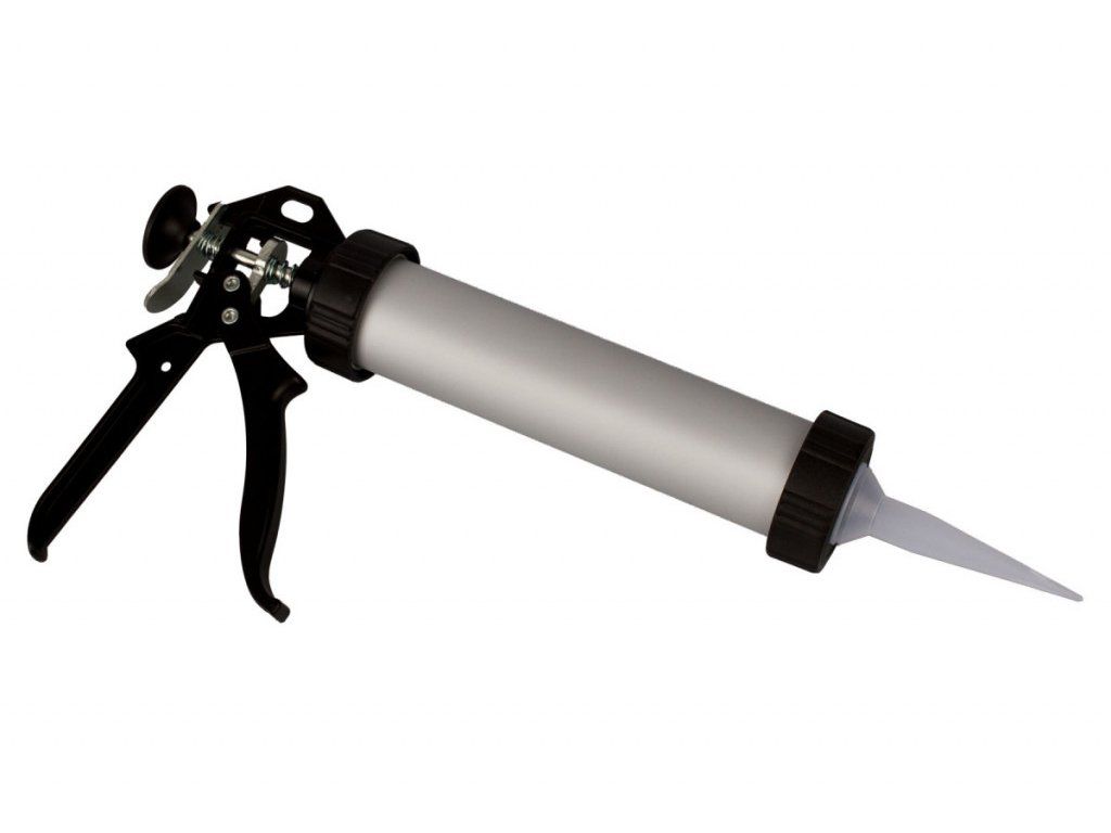Pistole na kartuše o délce 230 mm umožňuje snadné dávkování silikonu, akrylu, lepidla, tmelu a dalších těsnících hmot v klasické kartuši s objemem cca 310 ml i tzv. salámu s objemem cca 410 ml.