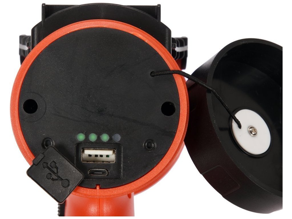Lampa je vybavena 3,7V 4400mAh lithium-iontovou baterií, poskytuje až 6 hodin práce a umožňuje nabíjet další zařízení - funkce powerbanky.