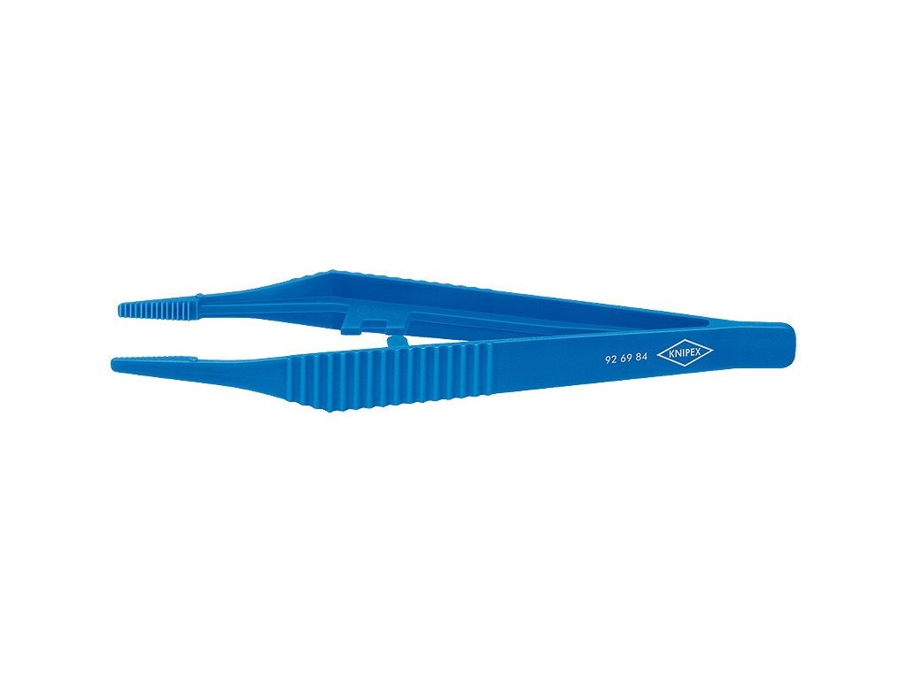 Lichoběžníkový hrot, široký asi 3,5 mm. Plochy čelistí ozubené. Drážkované rukojeti. Těleso malých kleští: celoplast, teplotně stálý až do cca 130°C.