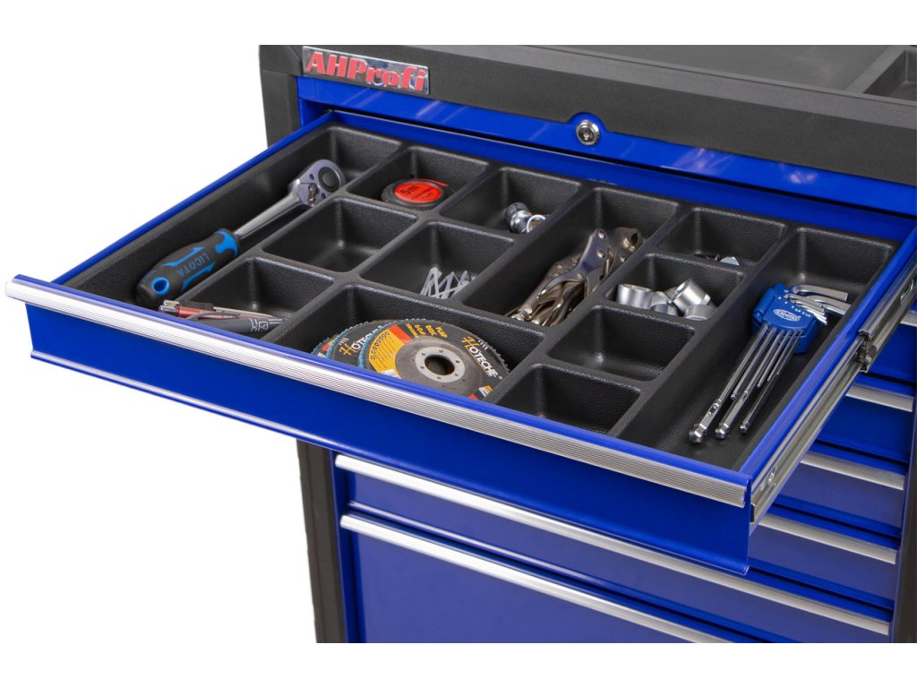 - Přehledné členění: 13 přihrádek různých velikostí pro snadné třídění nářadí, drobných součástek či příslušenství.