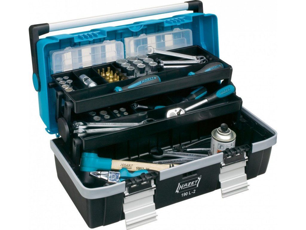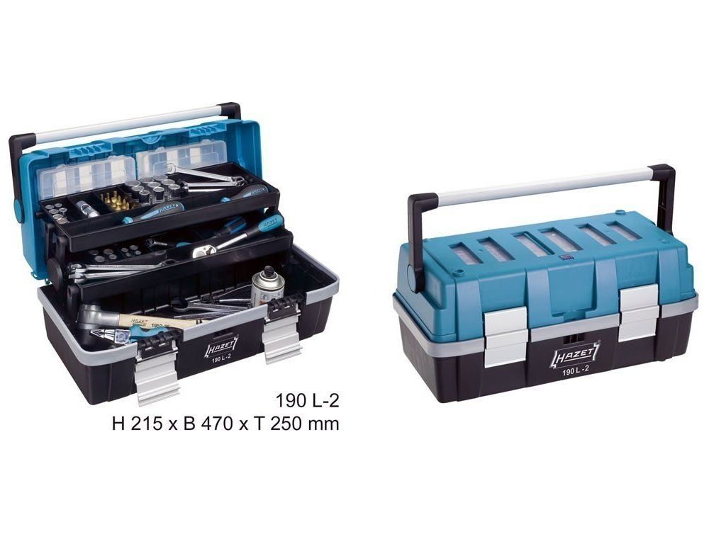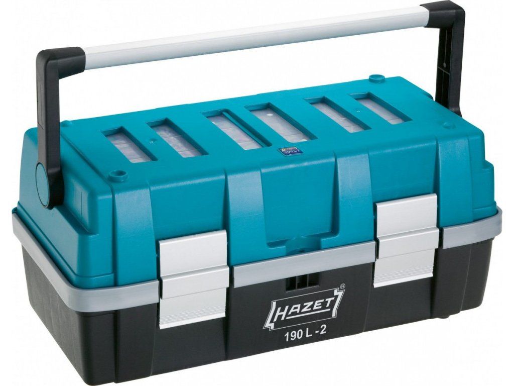 Kvalitní, robustní skříňka od německého výrobce HAZET, 2 skládací vaničky, hliníková rukojeť a zámky.