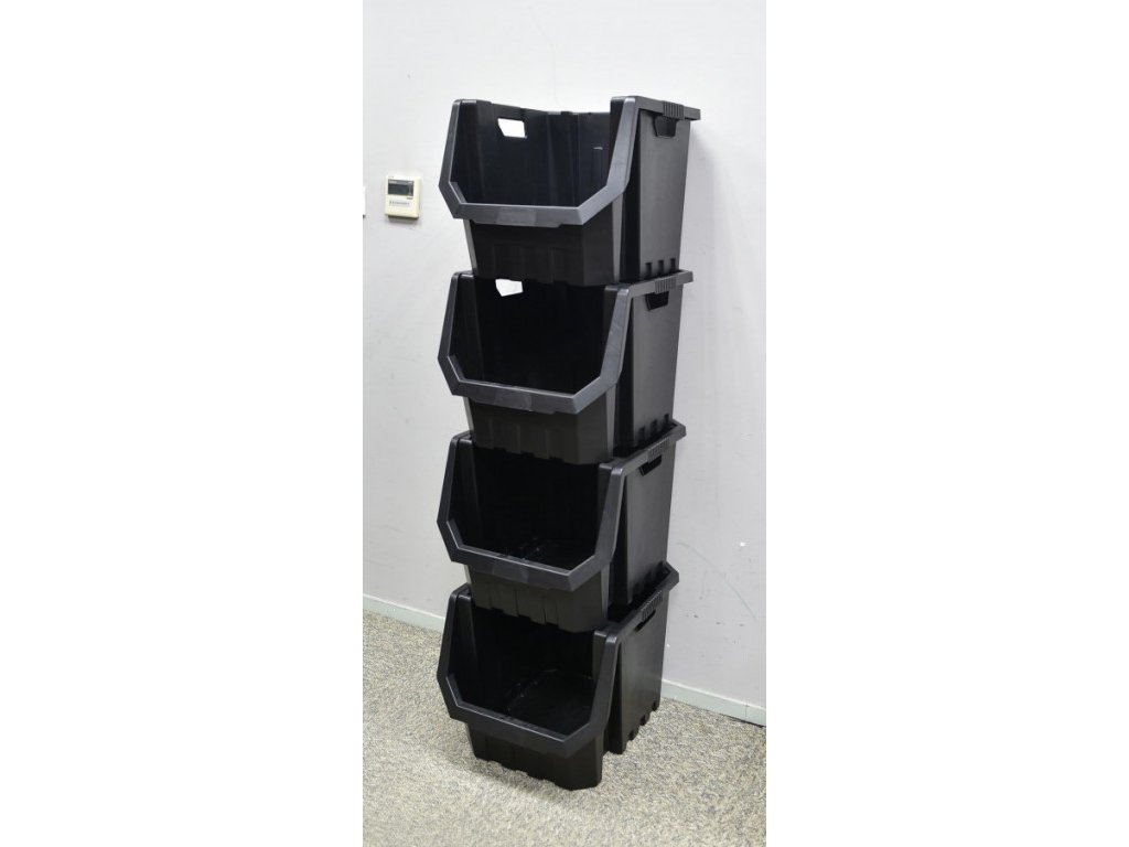 Možnost přidělat na zeď, nosnost 40 kg, otevřená přední strana, možnost skládat na sebe.