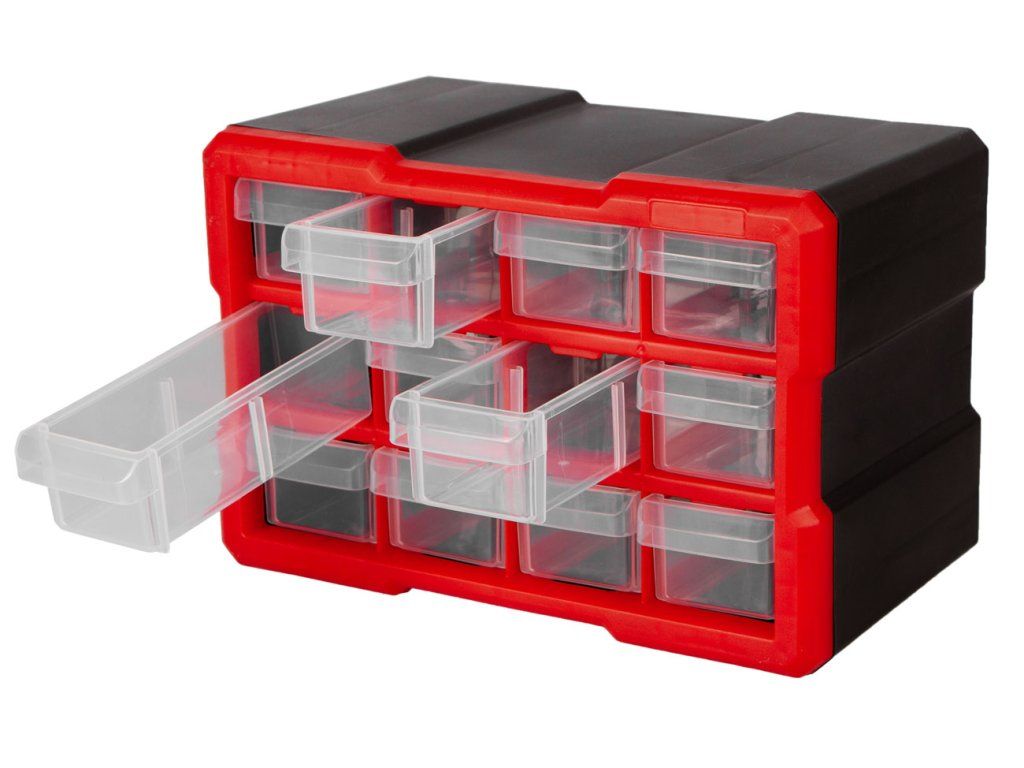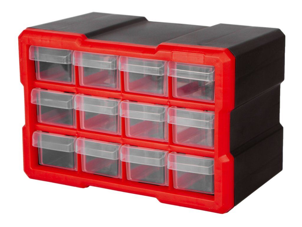 Organizér s 12 malými zásuvkami k závěsné desce MW7000. Rozměr 29,5 x 19,5 x 16 cm, 12 oddělených zásuvek. Vysoce odolný plast, červeno-černý, transparentní zásuvky.