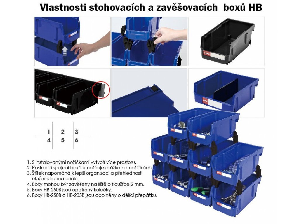 Úložný box s popisovacím štítkem a 4 plastovými nožičkami je výborný doplněk dílenského vybavení, který každému pracovníkovi pomůže zpřehlednit uložení nářadí a montážního materiálu.