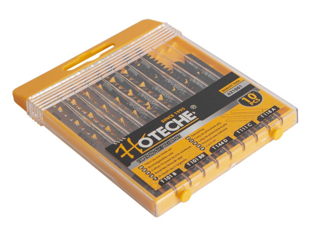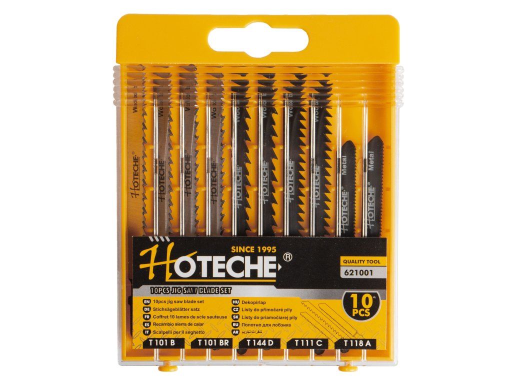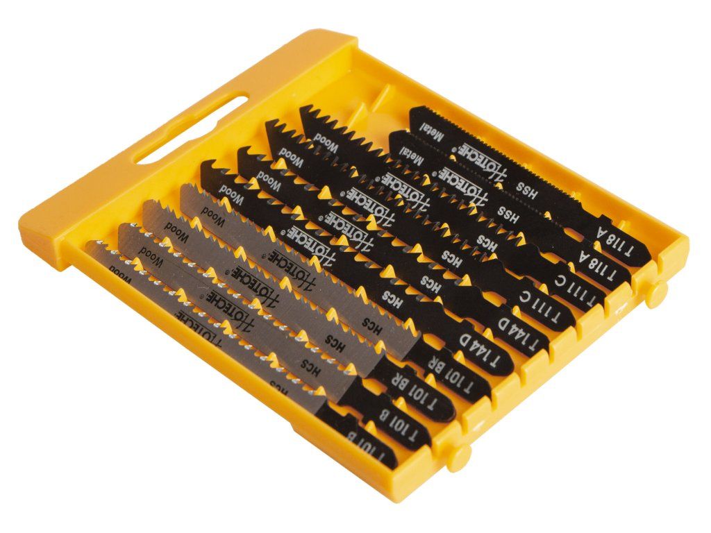 Sada obsahuje 10 plátků do přímočaré pily (šukalky). Využití na řezání dřeva, PVC nebo kovu a hliníku.