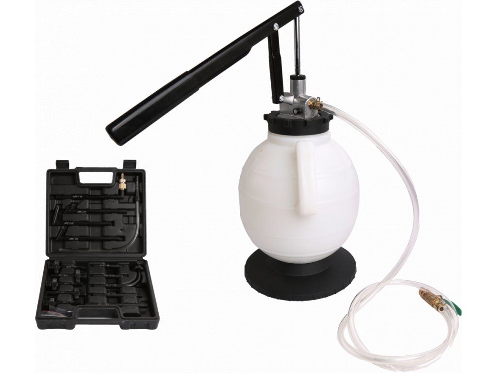 Pneumatická ruční plnička oleje do převodovek. Sada obsahuje 15 adaptérů označené ATF101-ATF115. Nádrž má objem 7,5 l.