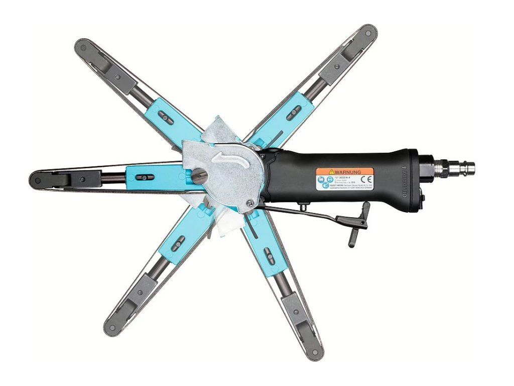 Výkonná pneumatická bruska s 10mm páskem pro přesné broušení detailů a hůře dostupných míst.