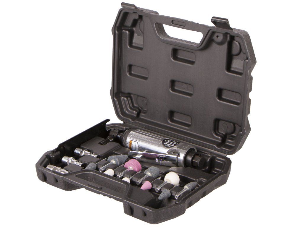 Stopky 3 a 6 mm, otáčky 25000 ot/min, spotřeba vzduchu 85 l/min, 10 druhů brusných kamenů.