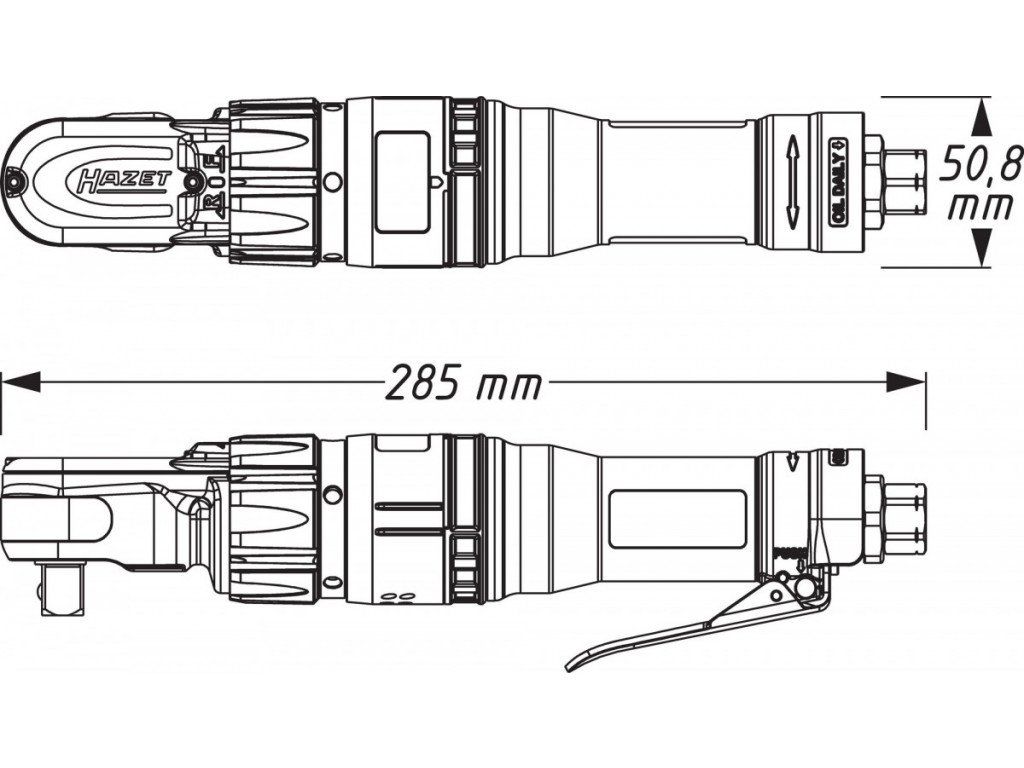 Pneumatický ráčnový utahovák 1/2" o délce 285 mm. Uvolňovací páka otočná o 360 stupňů.