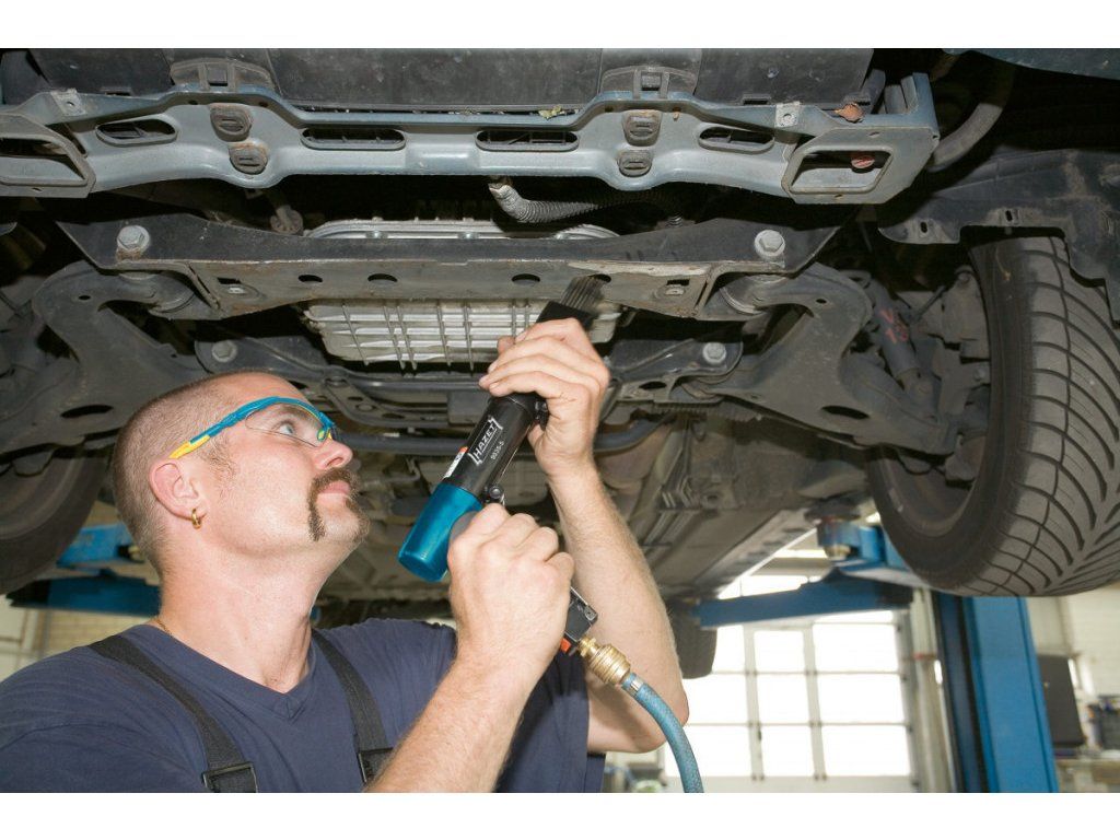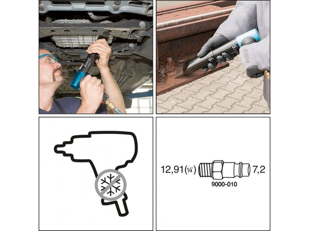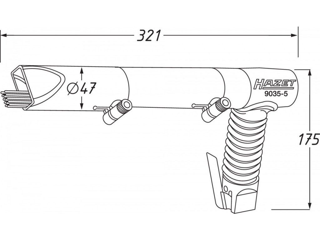 - Kvalitní jehlový oklepávač, či otloukač rzi ve tvaru pistole od německého výrobce HAZET.