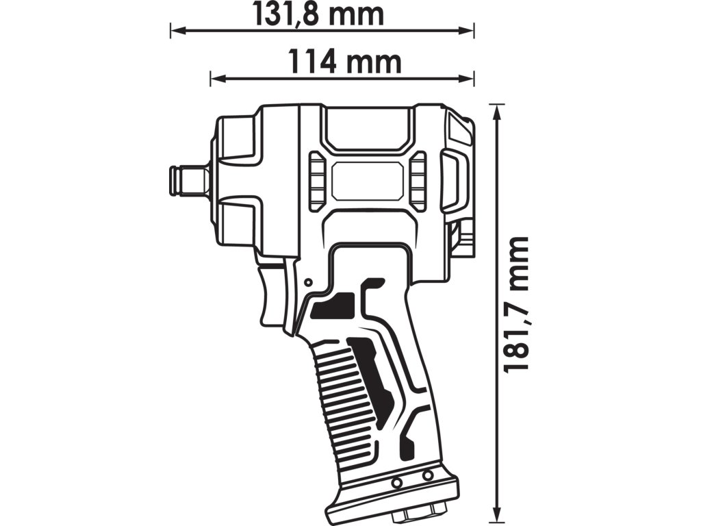 Čtyřhran 1/2", max. povolovací moment 1200 Nm, max. utahovací moment 850 Nm, otáčky 10000 ot./min.