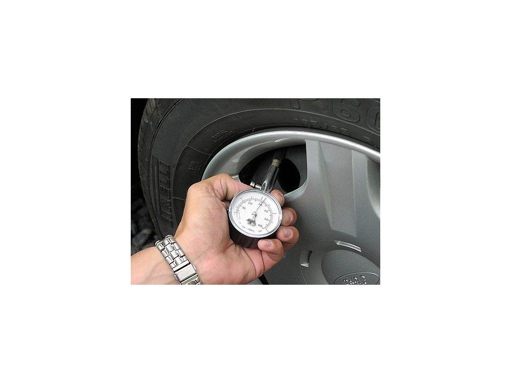 Profesionální celokovový měřič tlaku v pneumatikách. Uzavíratelné plastové pouzdro ochrání pneuměřič proti poškození. Rozsah až 0,3 - 4 Atm.
