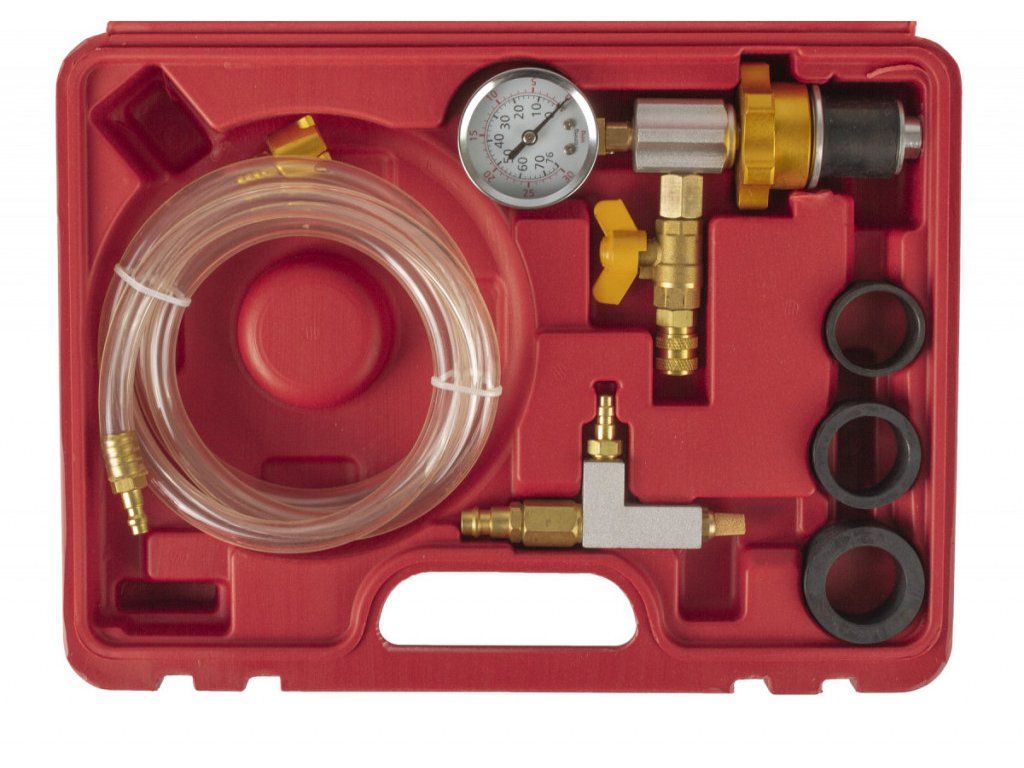 Přístroj pro plnění a odvzdušňování chladících systémů motorů.
