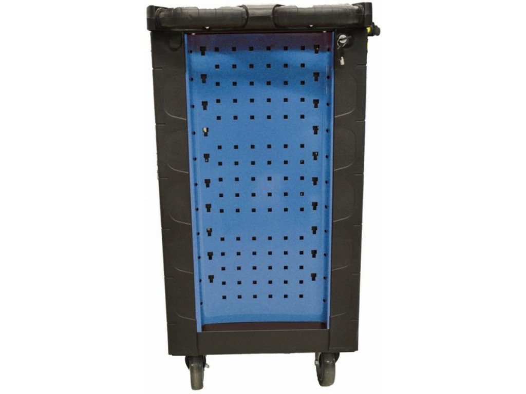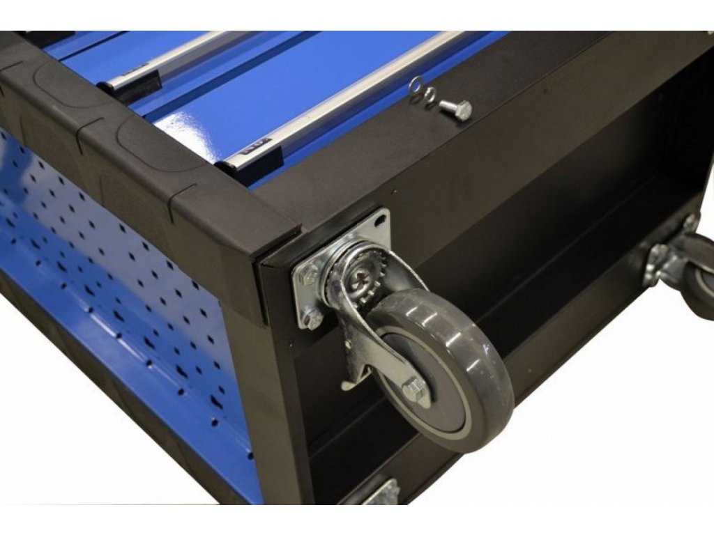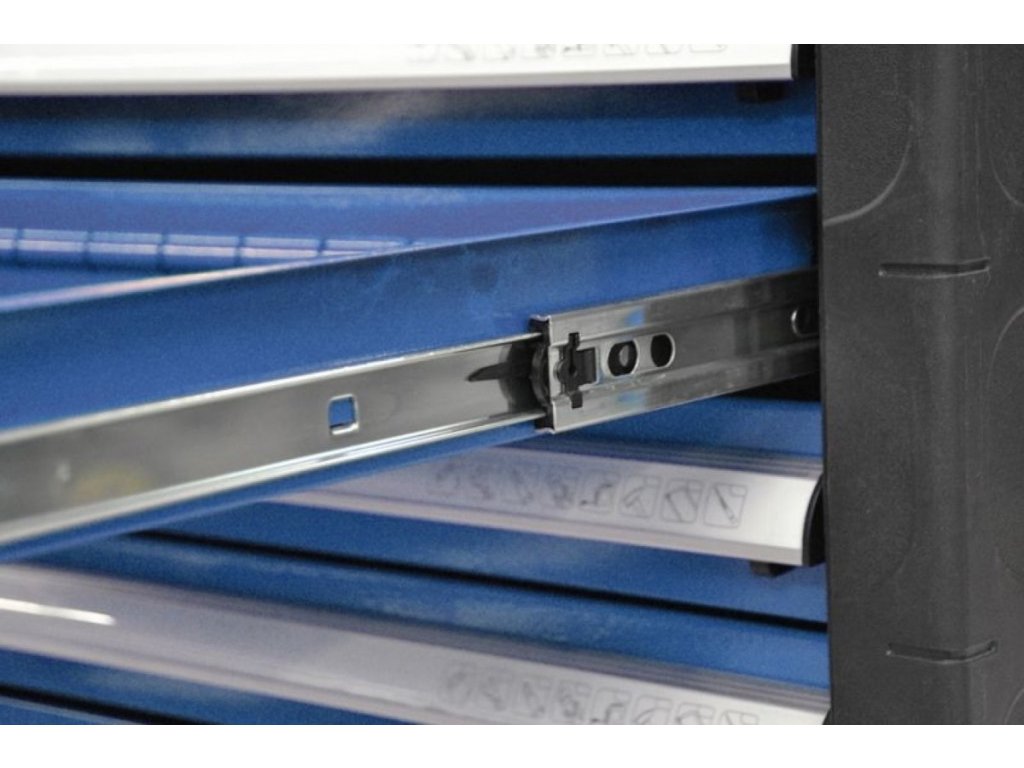 7 zásuvek na nářadí (→ rozměry d x š: 545 x 395 mm, výška: 1 x 135 mm, 1 x 150 mm, 5 x 75 mm; vybavení: teleskopické vodicí lišty, bezpečnostní pojistky proti neúmyslnému vysunutí, vnitřní štěrbinové dělení k rozčlenění prostoru děliči, centrální uzamykání cylindrickým zámkem).