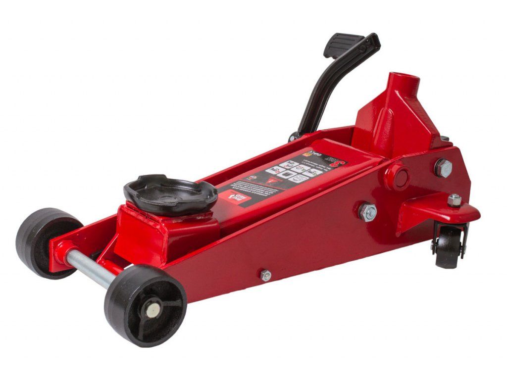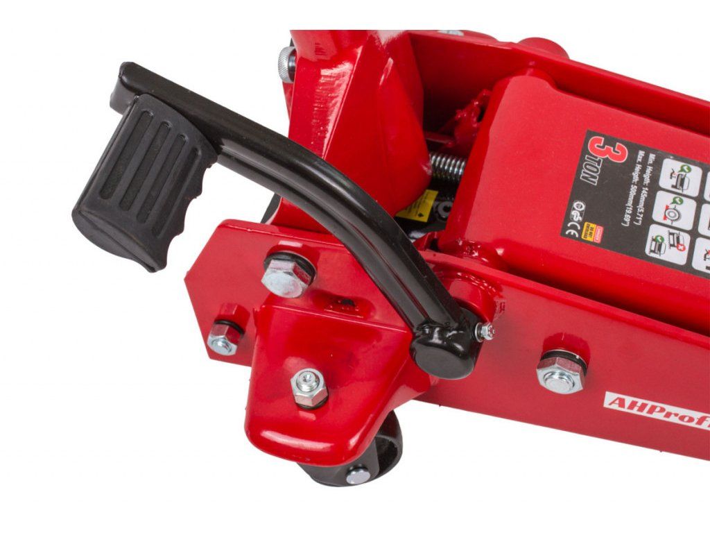 Rychlozdvižný zvedák, nosnost 3 t, ruční i nožní zvedání, rozsah zdvihu 140 - 500 mm.