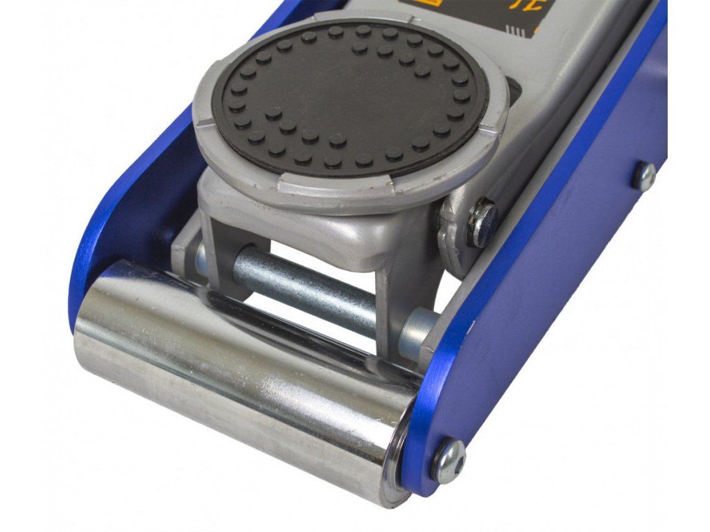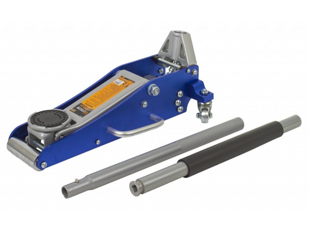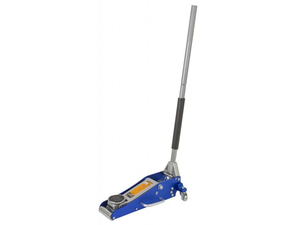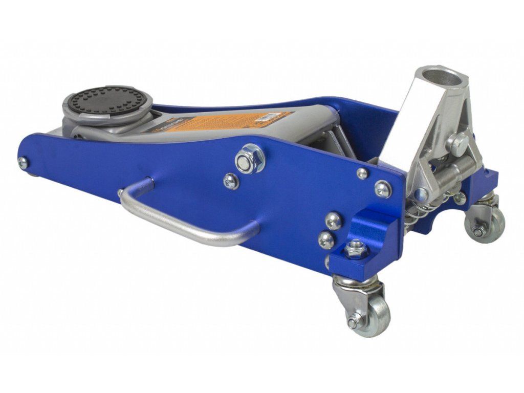 Pojízdný hliníkový zvedák. Nosnost 1,5 t. Zdvih 90 - 358 mm. Hmotnost 14,5 kg.