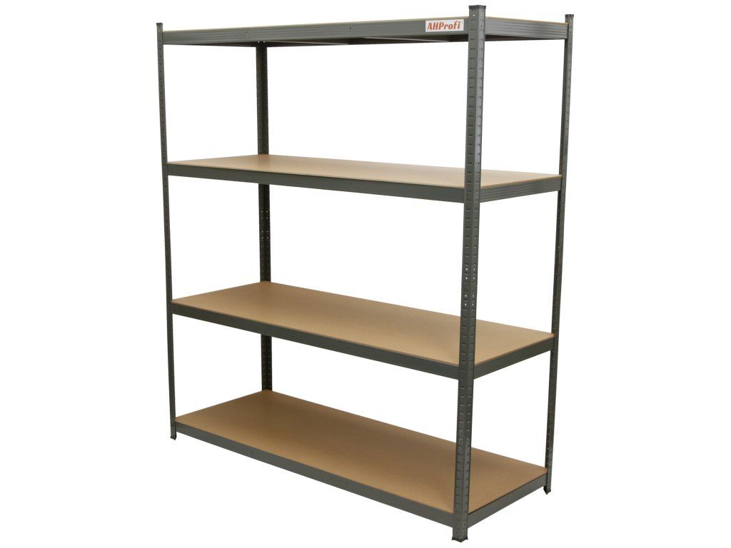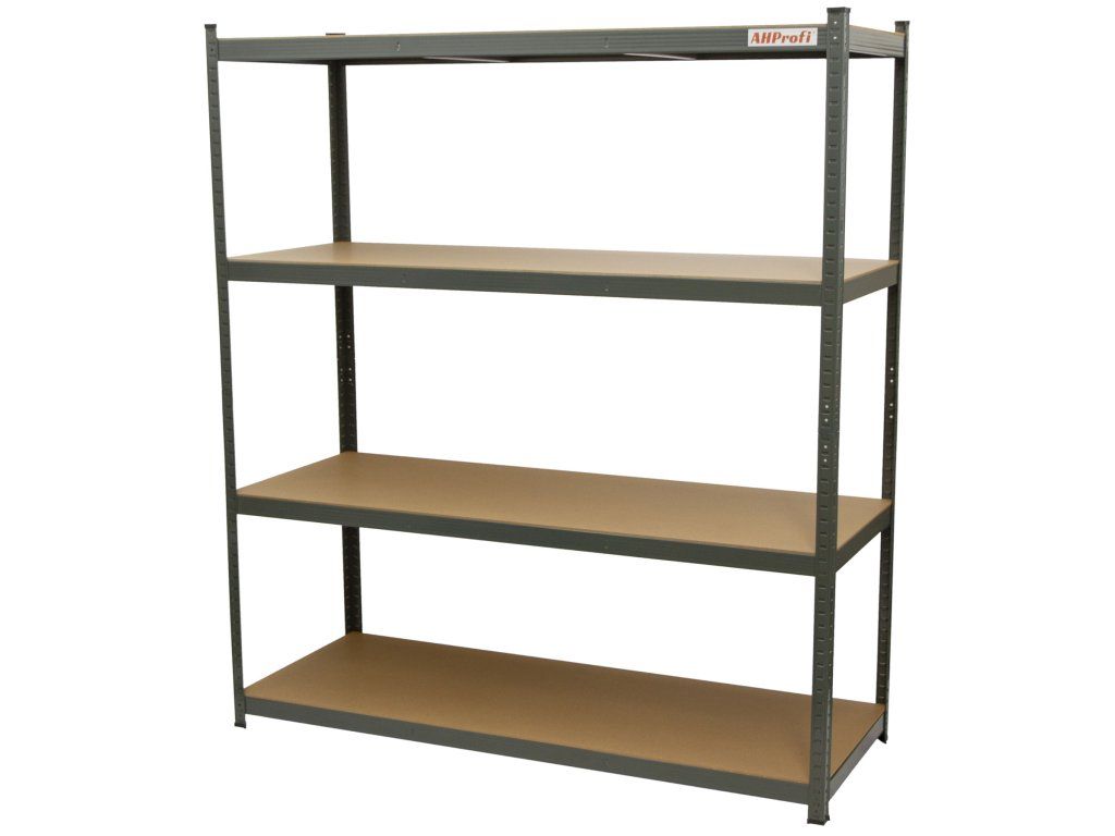 Regál je tvořen 4 kovovými stojinami z plechu o tloušťce 1 mm, které zajišťují výbornou pevnost a stabilitu i při větším zatížení.