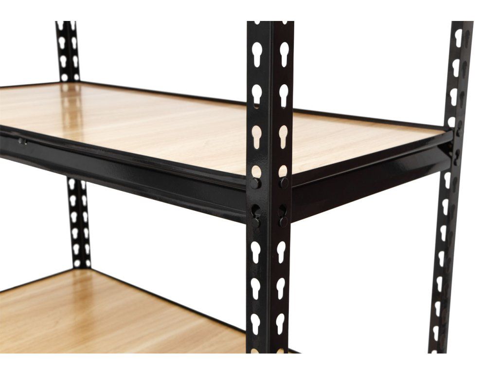 Policový regál je konstruován z kvalitní oceli pro maximální odolnost a stabilitu. Konstrukce z 0,8 mm oceli má oproti běžným regálům z 0,6 mm oceli vysokou nosnost až 265 kg na polici. Police jsou výškově nastavitelné a vyrobeny z pevných MDF desek s hladkým povrchem. Součástí regálu je 5 polic.