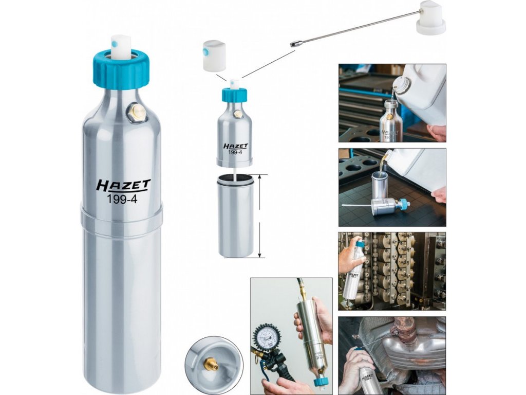 Postřiková láhev od kvalitního německého výrobce HAZET, opětovně plnitelná, objem 230 ml, plnění stlačeným vzduchem přes ventil na dně nádoby, 2 kusy trysek.