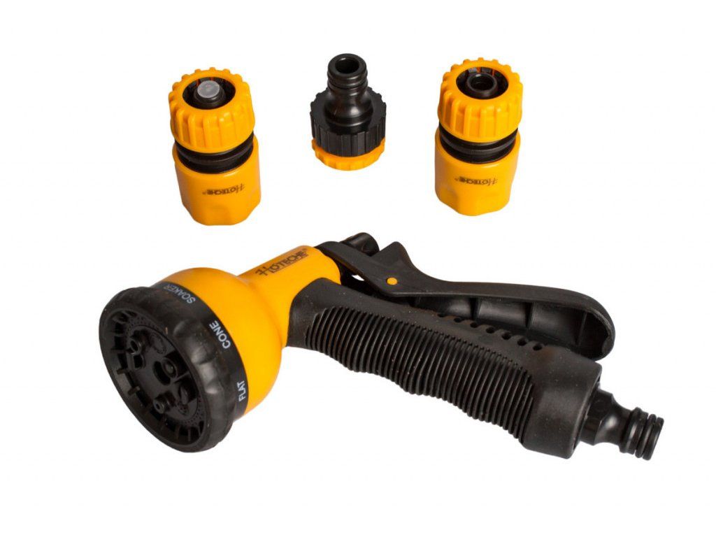 Postřikovací pistole značky Hoteche s rychlospojkou 1/2" pro snadné a rychlé připojení zahradní hadice. Jedná se o neocenitelného pomocníka na každé zahrádce.