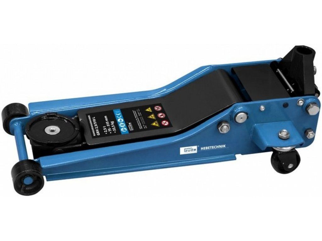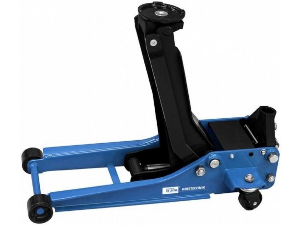 Pojízdný hydraulický hever, vhodný pro zdvihání vozidel se sníženými podvozky (→ max. nosnost: 2,5 tuny).