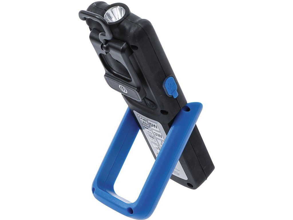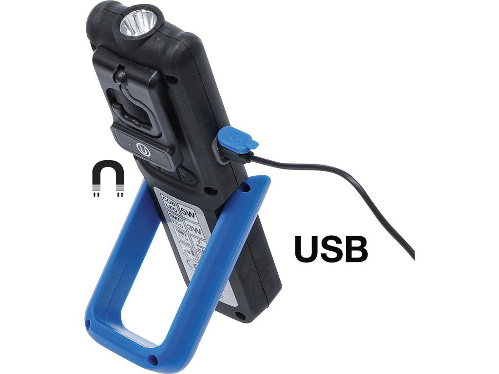 Pracovní montážní led svítilna 3,7 V, baterie 2 Ah, magnetický polohovatelný podstavec.