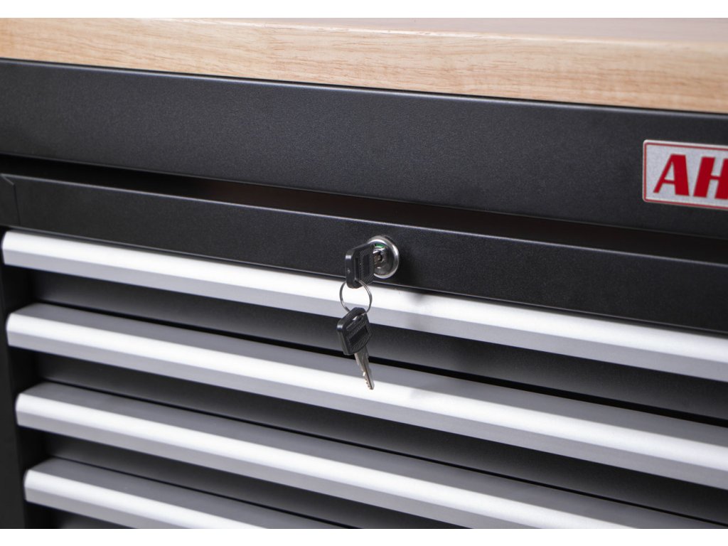 Pracovní stůl do dílny se závěsnou skříňkou, 5 zásuvek - AH1576
