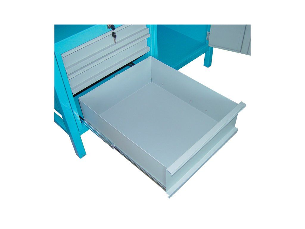 Kovové části s povrchovou úpravou práškovým lakem, barva: RAL 5015 (korpus), RAL 7001 (dvířka, zásuvky).