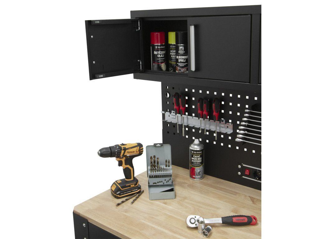Úložný prostor dále rozšiřuje spodní část ponku, kam lze uložit objemnější nářadí nebo součástky.