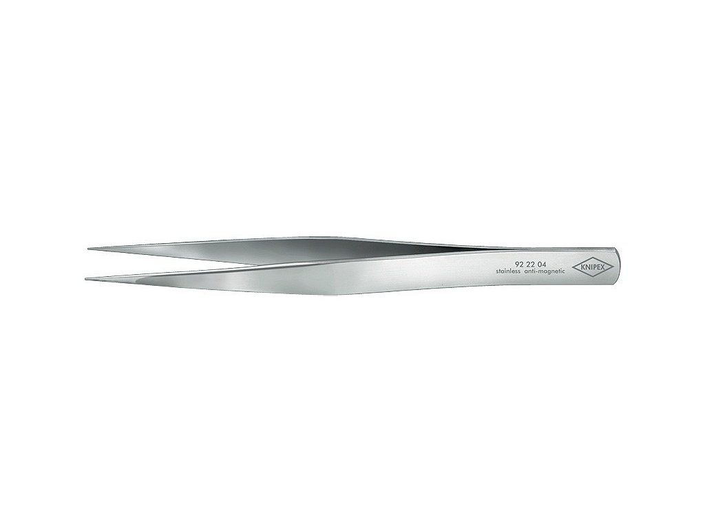 Pro jemné montážní práce. Rovný tvar. Plochy čelistí hladké. Obzvláště úzké hroty. Matováno. Chromniklová ocel: nerezová, antimagnetická (18/10), velmi běžná kvalita pro elektroniku. Plochy čelistí matované pro optimální uchopení.