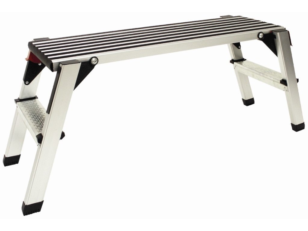 Stabilní a vysoce kvalitní skládací plošina s hliníkovou konstrukcí, nosnost 200 kg, rýhovaný protiskluzový profil, rozměr 1300 x 380 x 480 mm.
