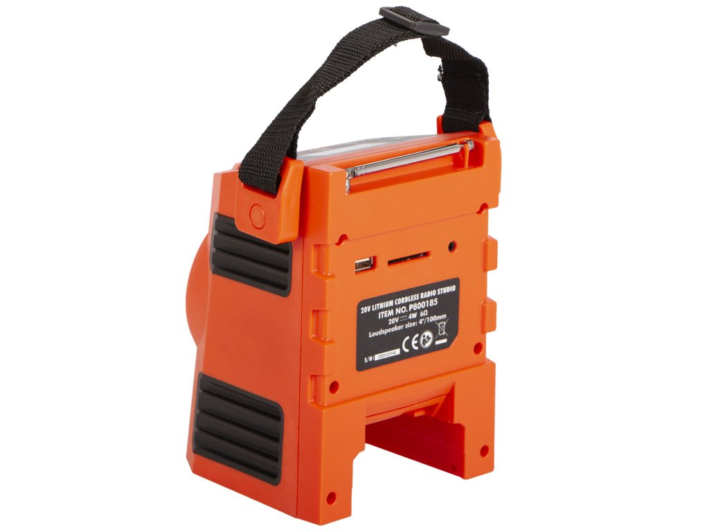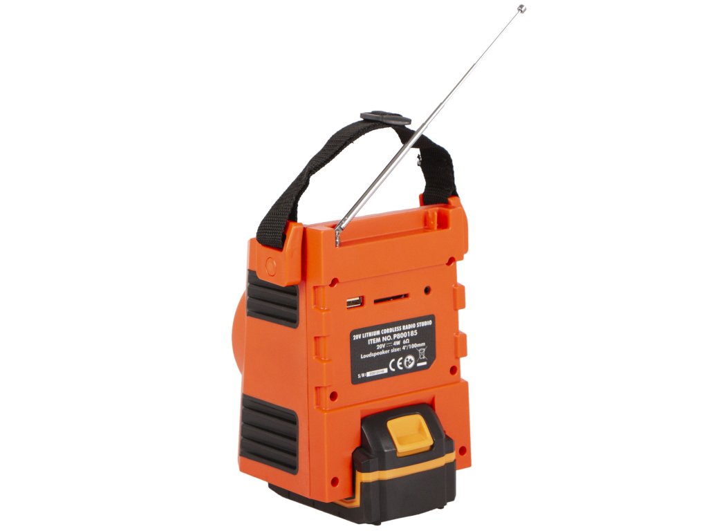 AUX, SD, USB a bluetooth, výdrž na jedno nabití 8 - 10 hod, bez baterie.