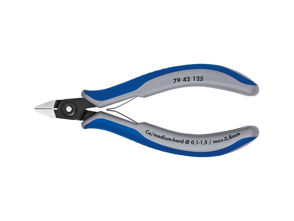 Precizní kleště pro nejjemnější stříhací práce např. v elektronice a jemné mechanice. Velmi přesně broušené, ostré břity s velmi malými fazetami na přesné řezy u citlivých elektronických součástek, rovněž bez fazet pro přesné odštípnutí. Břity doplňkově induktivně tvrzené, tvrdost břitů asi 64 HRC kováno. Hmotnost cca o 20 % nižší než u konvenčních kleští na elektroniku. šroubový kloub s precizně vyrobenými kloubními plochami pro rovnoměrný pohyb s malým třením v celém rozsahu rozevření.. Dvojitá pružina s malým odporem pro snadné a rovnoměrné rozevření.. Ergonomicky optimalizované vícesložkové návleky rukojetí. Kováno z chrom-vanadové oceli na kuličková ložiska. špičatá hlava.