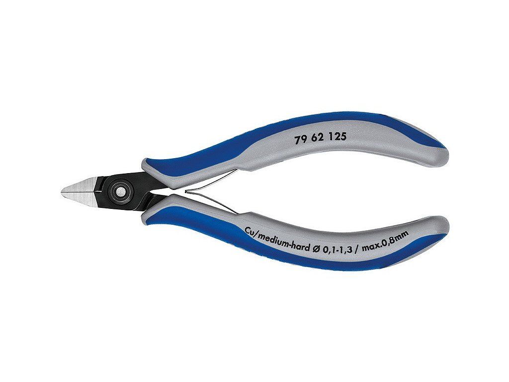 Precizní kleště pro nejjemnější stříhací práce např. v elektronice a jemné mechanice. Velmi přesně broušené, ostré břity s velmi malými fazetami na přesné řezy u citlivých elektronických součástek, rovněž bez fazet pro přesné odštípnutí. Břity doplňkově induktivně tvrzené, tvrdost břitů asi 64 HRC kováno. Hmotnost cca o 20 % nižší než u konvenčních kleští na elektroniku. šroubový kloub s precizně vyrobenými kloubními plochami pro rovnoměrný pohyb s malým třením v celém rozsahu rozevření.. Dvojitá pružina s malým odporem pro snadné a rovnoměrné rozevření.. Ergonomicky optimalizované vícesložkové návleky rukojetí. Kováno z chrom-vanadové oceli na kuličková ložiska. S drátěnou svěrkou - žádné nekontrolované odskakování odstřižků drátů. špičatá hlava.