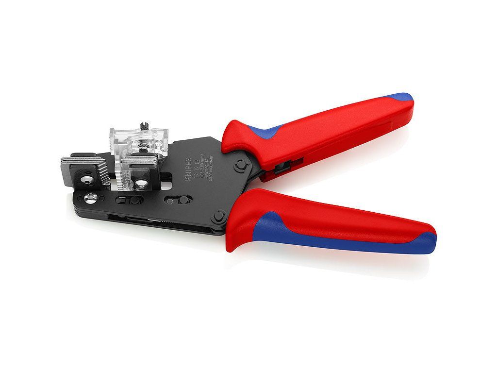 Tvarově přesné odizolování i obtížně odstranitelných izolačních materiálů vyrobených z PFTE, Silikon, Radox ®, Kapton ® a pryž, a to i vícevrstvých. Druhý pár nožů spolehlivě přidrží zbývající izolaci. Výměnné tvarové nože přesně uzpůsobené příslušnému průřezu kabelu. S nastavitelným délkovým dorazem pro stále stejné délky odizolování při sériové výrobě. Těleso kleští: ocel. Nůž: speciální nástrojová ocel, kalená v oleji. Speciálně pro kabely podle americké specifikace (AWG).