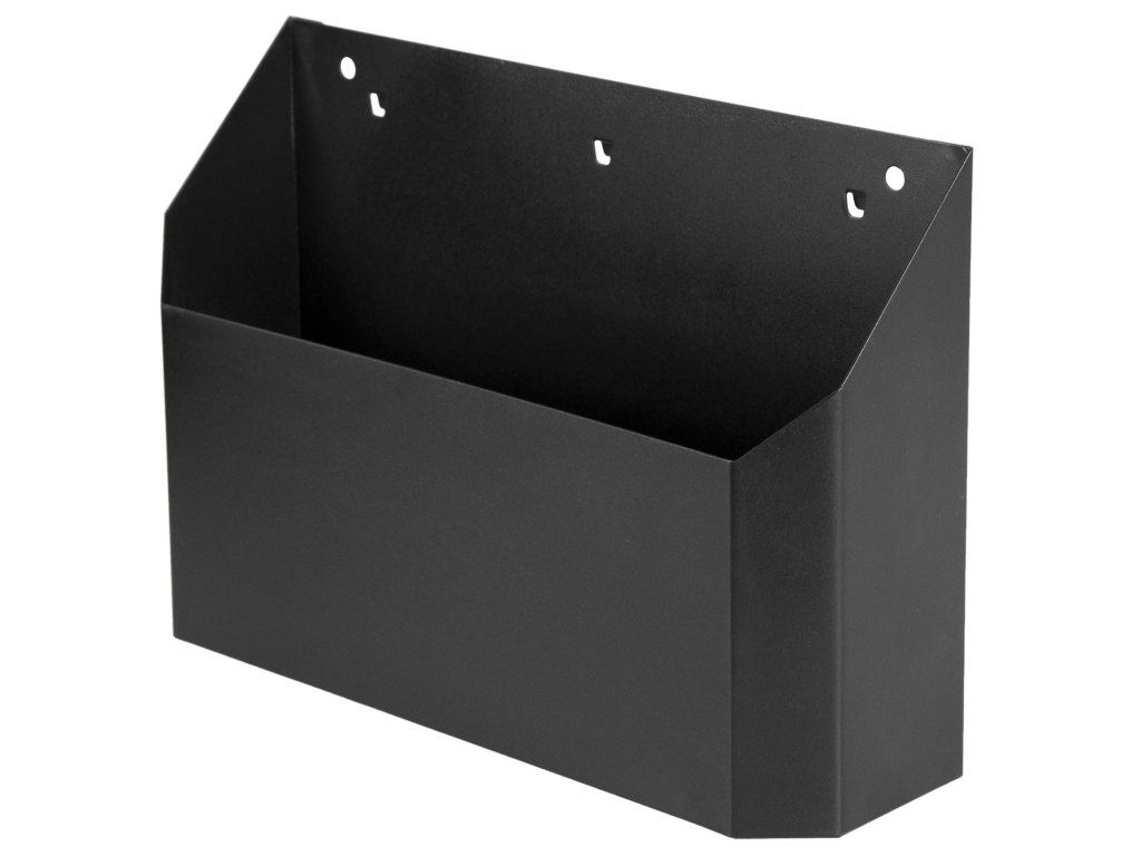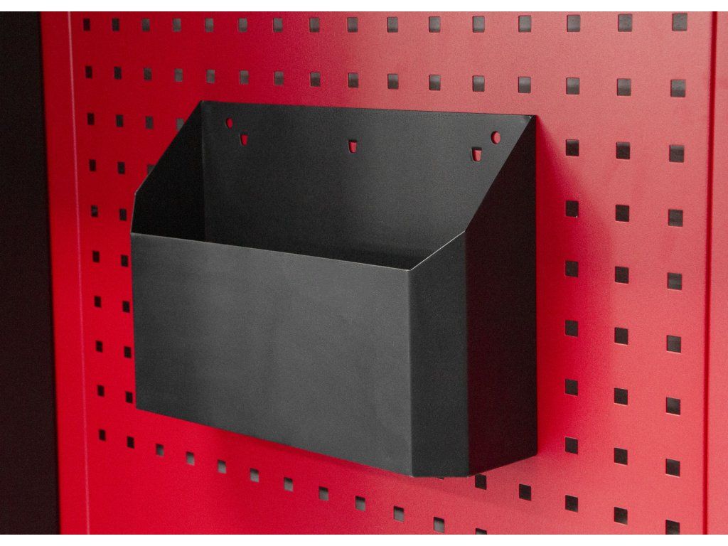 Přihrádka na dokumenty nebo prospekty je určená pro děrované desky s roztečí 38 x 38 mm. Připevněním na perforovaný panel lze rozšířit úložný prostor také pro sestavy dílenského nábytku, dílenské vozíky s nářadím i bez nářadí, pracovní stoly i policové regály.