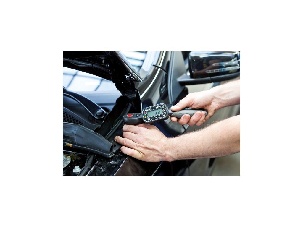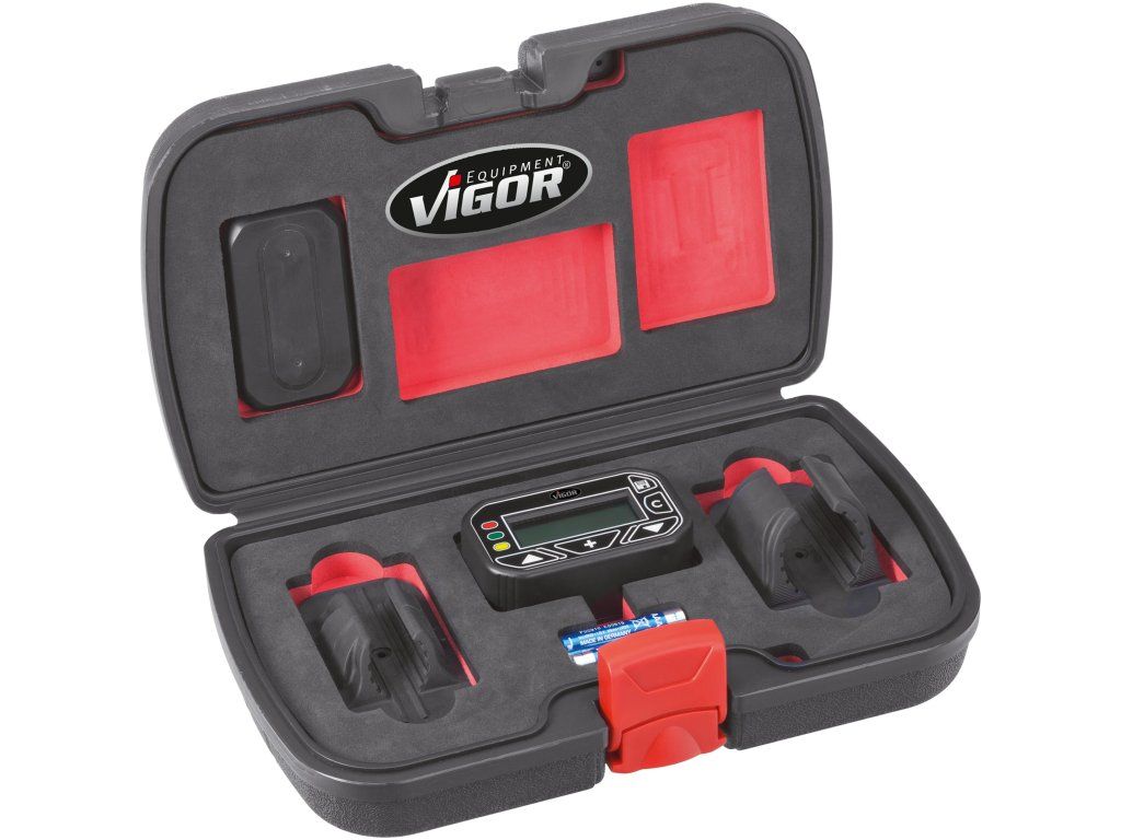 V sadě naleznete digitální měřič a adaptéry se silným magnetem, které lze nasadit na jakoukoliv ráčnu, klíč apod.