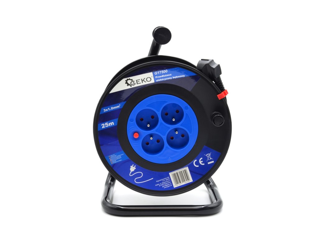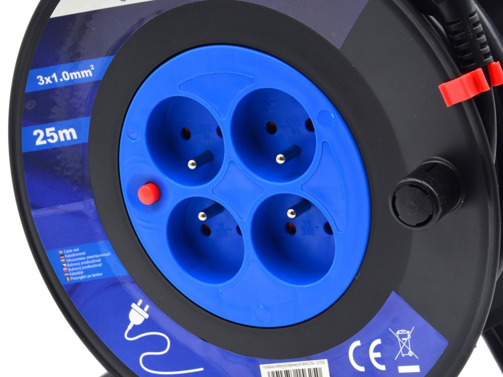 Na bubnu je navinutý elektrický kabel o délce 25 m, který je vyvedený do 4 zásuvek.