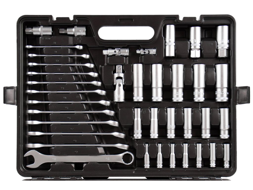 Gola sada 1/2", 1/4" a 3/8" obsahuje 220 kusů nářadí, jako ráčny, očkoploché klíče, krátké i prodloužené nástrčné klíče, nástrčné klíče E-Torx, klíče na svíčky, bity a další. Celá sada je přehledně uložena v pevném plastovém kufříku v rozměru 455 x 345 x 95 mm.