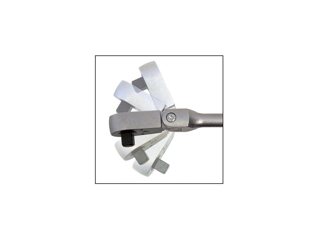Přepínací ráčna s kloubem, dlouhé provedení, pohon 3/8", pro šrouby na těžko přístupných místech, leštěný chromovaný povrch.
