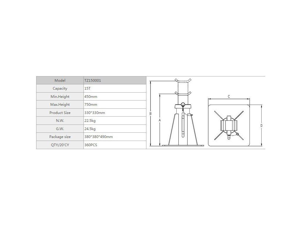 Profesionální stavitelná podpěra o nosnosti 15 t, min. výšce 450 mm a max. výšce 750 mm