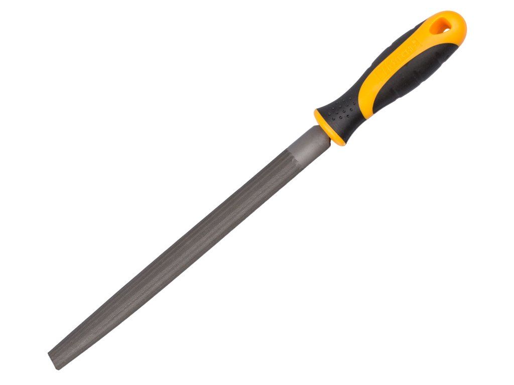 Půlkulatý pilník na kov, délka 250 mm, materiál Cr-V ocel a plastová rukojeť.
