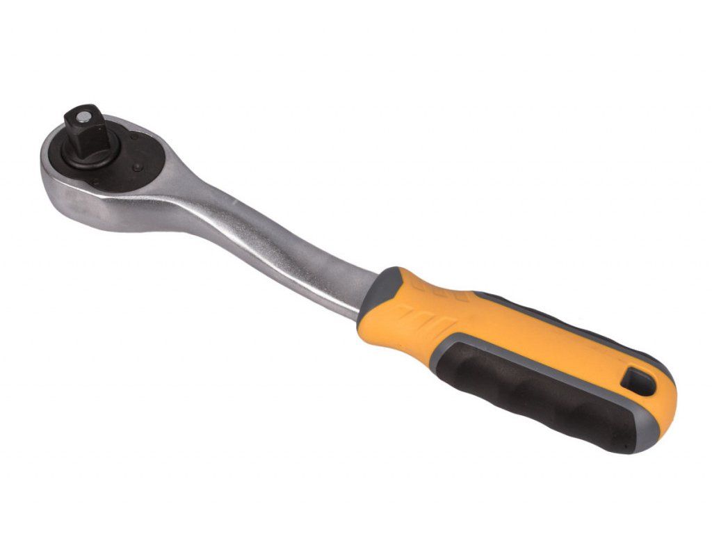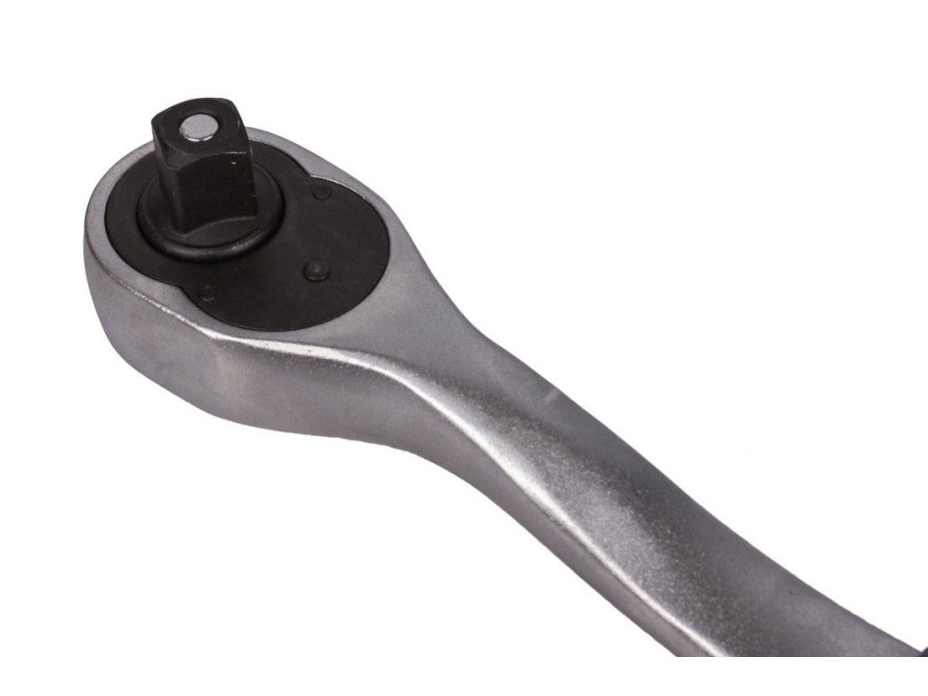 Vyhnutá ráčna 1/2" určená pro utahování a povolování šroubových spojů v dílně, garáži i při montážních pracích.