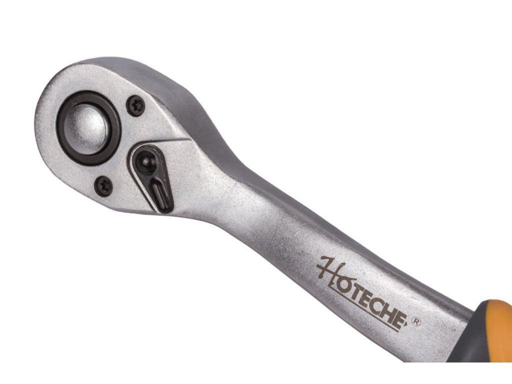 Ráčna je vybavena přepínacím mechanismem a ráčnovým převodem se 72 zuby pro jemný krok a přesnou práci. Na konci se nachází ergonomická rukojeť z protiskluzového materiálu s otvorem pro zavěšení.