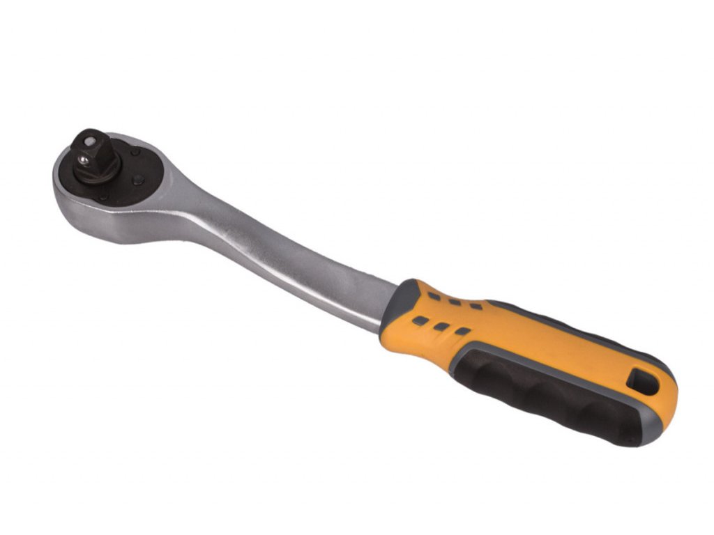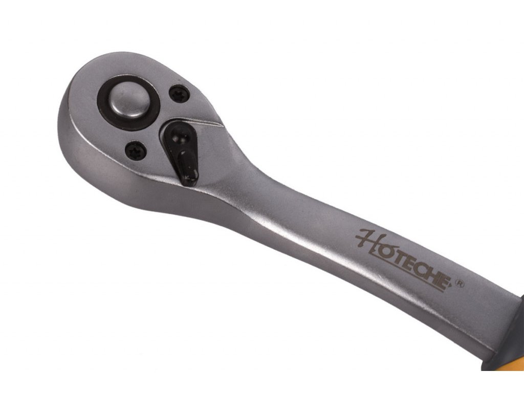 Ráčna je vybavena spolehlivým ráčnovým mechanismem se 72 zuby, přepínací páčkou směru a tlačítkem pro rychlé uvolnění nástavců.