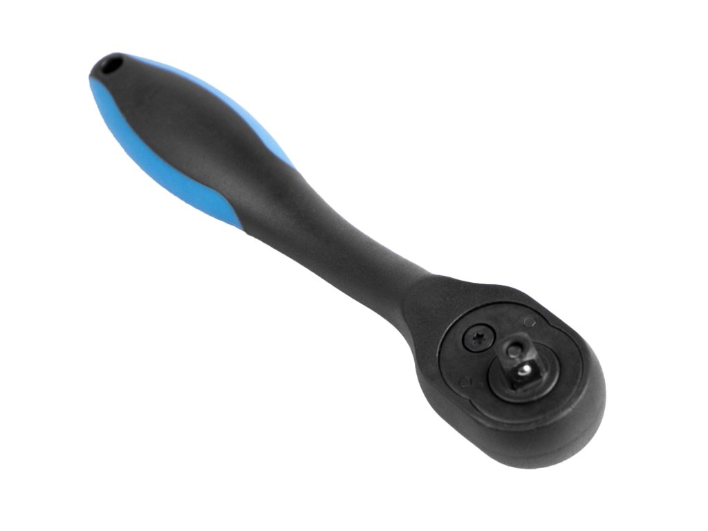 Ráčna je vybavena 72zubým mechanismem, přepínací páčkou směru a ergonomickou rukojetí s protiskluzovým povrchem pro pohodlné držení.